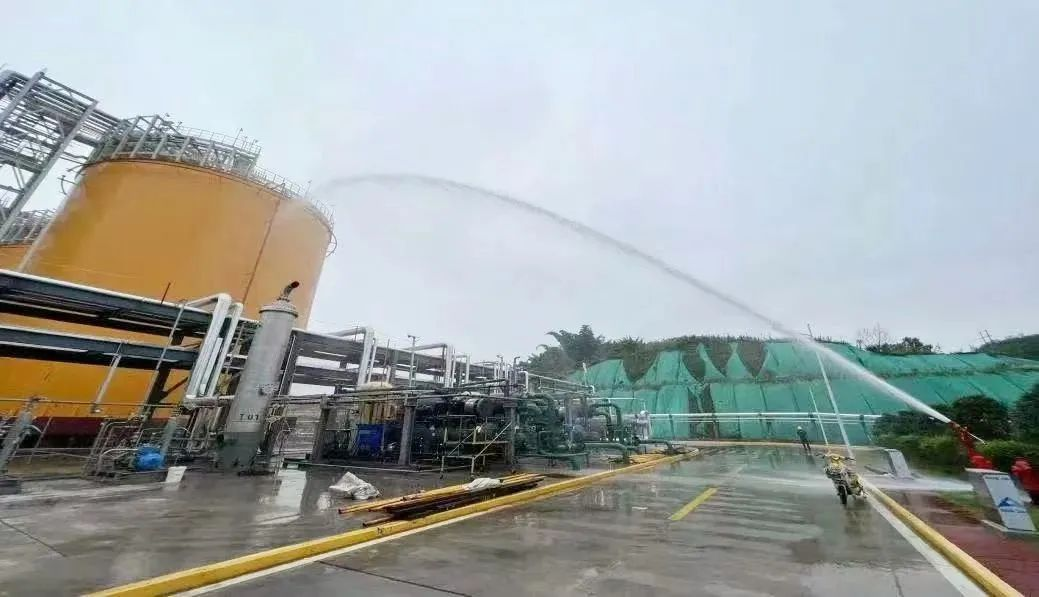 由我司提供的电动消防水泵顺利投入工作状态,出水量、水压稳定可靠。随后对消防水系统管网进行了冲洗试验、强度和密封试验,同步对储氨系统罐区消防栓、消防炮和喷淋水设施进行喷水试验。