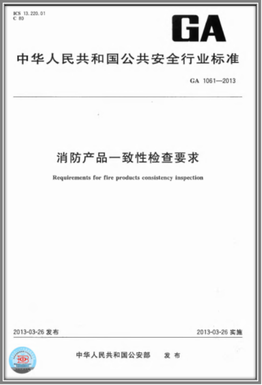 消防产品的现场检测验收,可依据《消防产品一致性检查要求》(XF1061-2013)进行,本标准明确:本标准适用于消防产品认证初始工厂检查及证后监督管理工作的消防产品一致性检查,也可用于各类消防产品质量监督工作的产品一致性核查。
